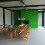 La base è dotata di un’area giorno con cucina e sala attività ed un area notte con due camerate e servizi igienici. La cucina è completamente attrezzata. Nel rifugio è presente anche una lavanderia.La zona giorno è collegata alla zona notte da un portico, per attività all’aperto. Alle spalle della casa è presente un terreno dove poter ospitare tende.